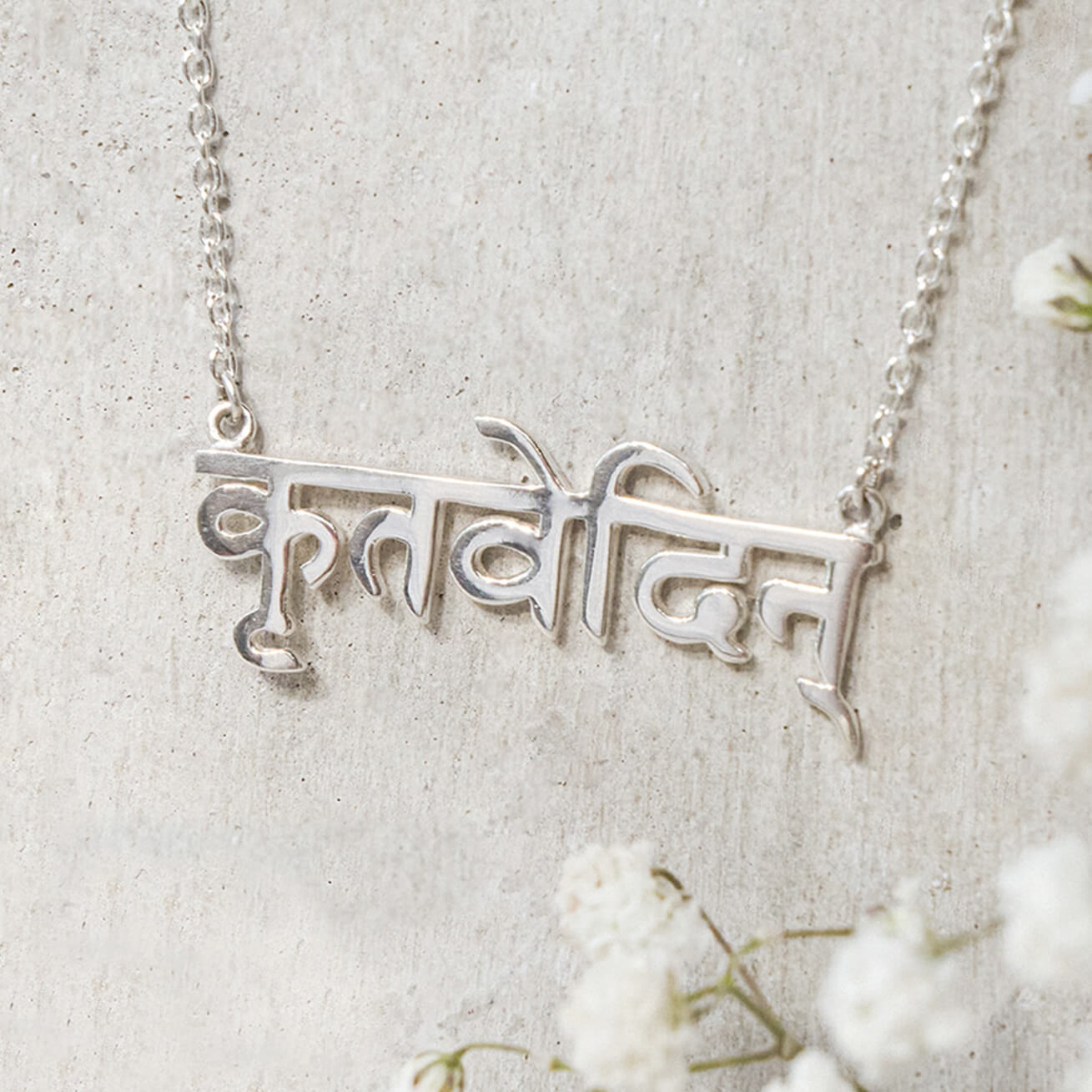 The ‘Grateful’ Sanskrit Mantra Necklace is an embodiment of this sublime expression. Gratitude, after all, is not just a fleeting emotion. It’s a personal truth, a perspective that sees life as a gift teeming with endless possibilities that inspire thankfulness. Gratitude does not just imply greatness, it creates it. Crafted with the Sanskrit word for ‘Grateful’, this delicate necklace serves as a daily reminder of the importance of gratitude in our quest for true happiness. Every time you look at it, you’ll be reminded to appreciate the beauty of life’s gifts, to open your heart to others, and to embrace the greatness that gratitude brings. Say it with love. Say it with power. Say it in Sanskrit.