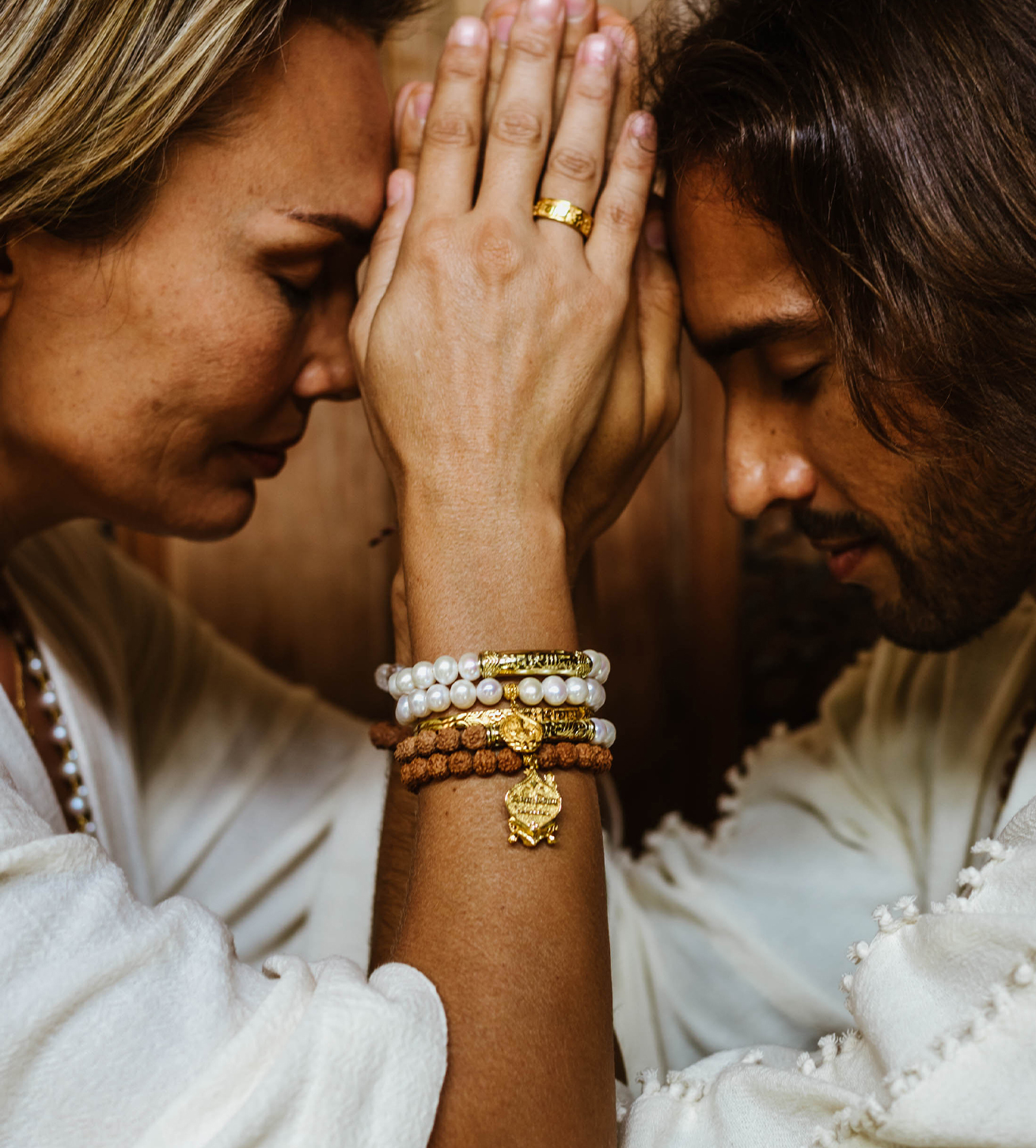To receive the greatest benefit from your bracelet, we recommend wearing during a mantra meditation practice, using authentic, high-vibrational Vedic mantras. This will amplify and continue to grow the power of your already powerfully activated and blessed mala. Your mala acts as a storage vessel for divine power, so it’s of immense, personal benefit to keep charging your mala through active meditation practice and participation in important spiritual ceremonies, devotional rituals and heartful prayer.